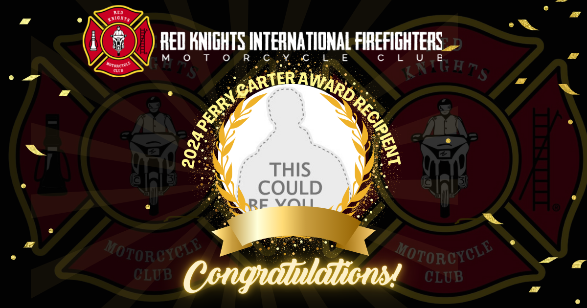 SOG 13:01 RKMC of the Year, Goal of the Award It is the goal of the Red Knights International Firefighter Motorcycle Club to identify and honor a member each year as the Red Knight of the Year. This award will be known as the “Perry Carter Award,” honoring Perry for his endless work and dedication to the Red Knights Motorcycle Club. Only an active member in good standing with the International may be eligible for this award. This is to include the Members at Large. Any member may nominate any Member at Large. This nomination would follow the same path as listed below. Current members of the International Board are not eligible for the Perry Carter Award. Each Chapter may nominate a member for the Red Knight of the Year. The nomination would be sent to the State/Provincial Representative and then to the Regional Director. Each Regional Director would then forward their nominee to the Chairperson for this award. The committee will consist of the Regional Directors and the past two recipients. The chairperson will be a Regional Director, on a rotating basis, commencing with Region 1 in 2013. Members who are nominated should have been present at 50% of the Red Knights Motorcycle Club chapter events during the year. The member nominated should have visited at least one other Chapter during the year. The 26 members nominated should have attended at least one International Annual Convention in the past. The Member nominated should represent and signify the Red Knight’s standard in their dealings with the public and the International members. The deadline for receiving the nomination shall be prior to March 1st of each year . The final decision will be made at the Spring Board meeting each year. All members of this committee will be notified of the names and information that have been submitted to receive this award. They are to review those names and information on why they were nominated and submit their choice in order of first, second, and third to the Committee Chairperson, no later than 14 days before the Spring International Board Meeting. Once the Committee has made its decision, the Committee Chair will advise the International President. The recipient of this award shall receive recognition and their registration fee for the year they are receiving the award to be paid by the RKIFMC. The recipient shall receive a 4” upper arch patch. The International president shall send a letter to the Chapter President of the member’s chapter who wins this award notifying him of the winner. At the International Annual Convention, the International President shall have all of the members from the winner’s chapter come up for the presentation.